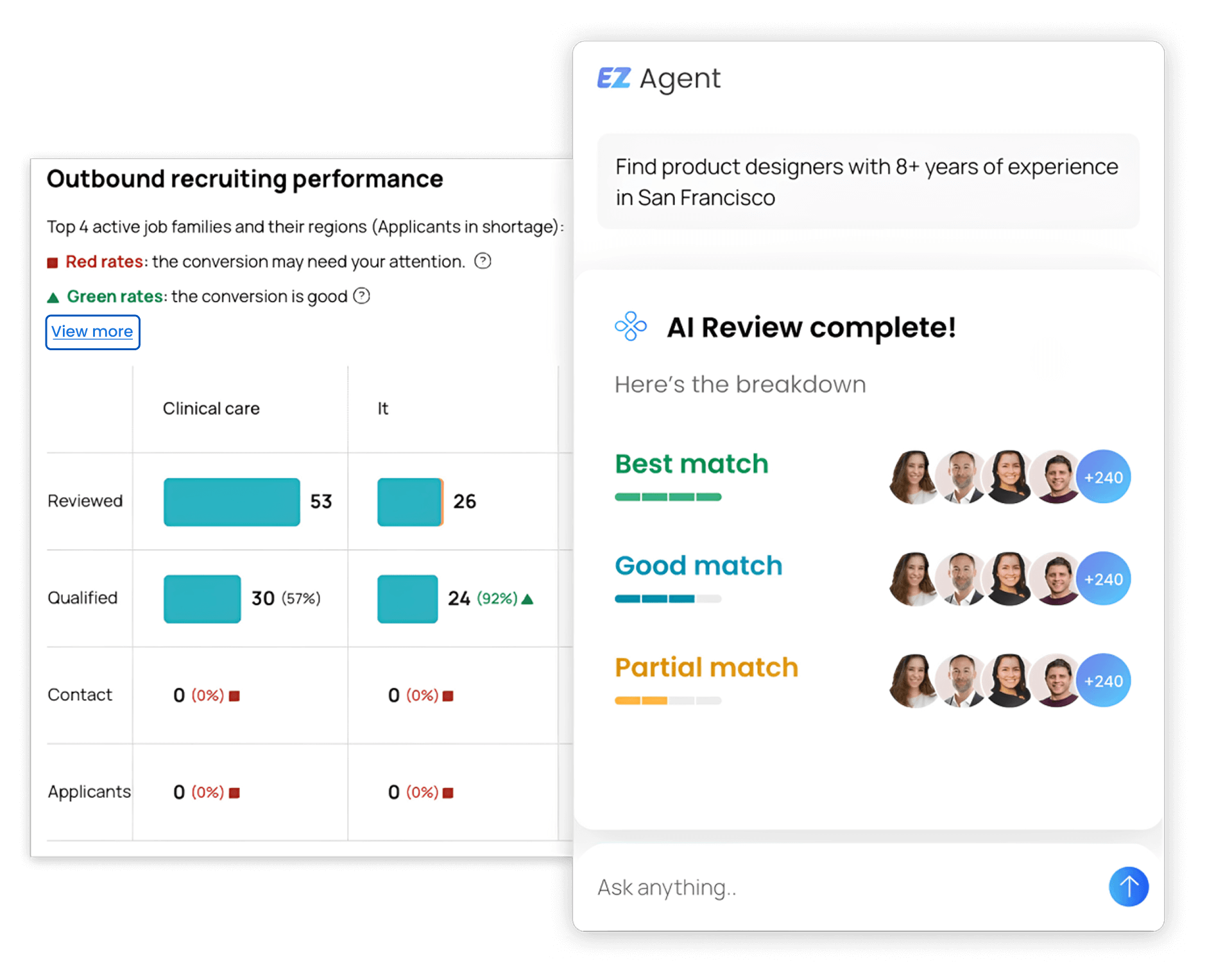 hireEZ's AI Sourcing scans the open web and ATS instantly, surfacing qualified candidates to deliver faster shortlists.